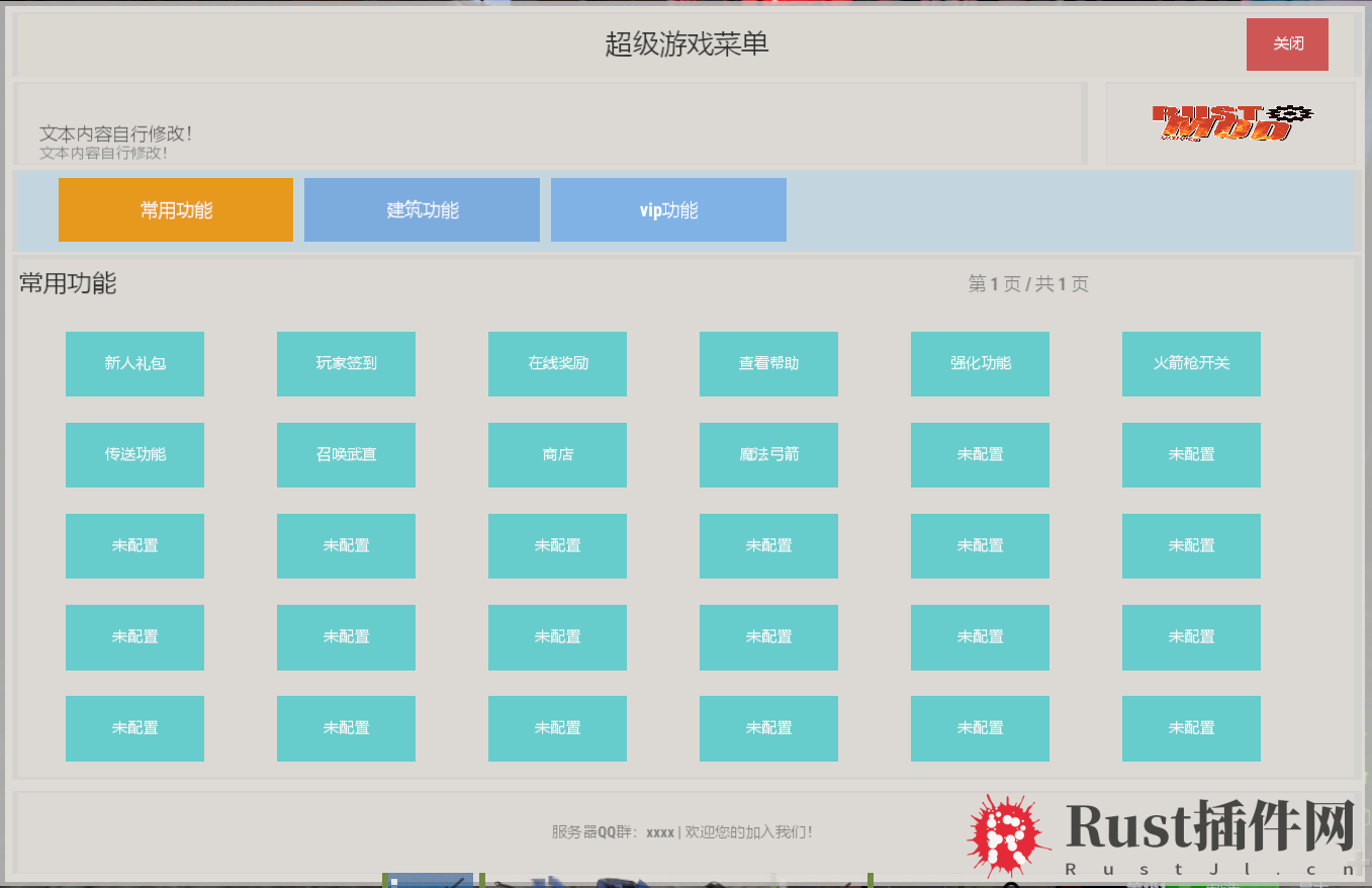 rust插件网 提交新资源: 菜单 - 菜单插件 浏览附件648 打开ui指令/agui 一般基本用不到屏幕左边有个快捷按钮点击就可以打开ui了,在游戏内打开任何可以调出鼠标的操作就可以点击它进入到ui 无需任何权限 后期会慢慢的更新美化 点击展开... 阅读关于此资源更多信息...